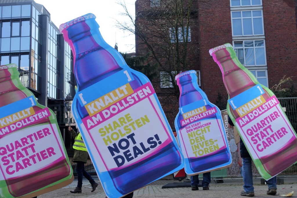 Nach wie vor wird von interessierter Seite – wie zuletzt von der Finanzbehörde oder auf Instagram von den Grünen – kontrafaktisch der Eindruck erweckt, die Stadt sei via SAGA quasi Miteigentümerin des Grundstücks. Wir halten diese Behauptung für eine bewusste Irreführung der Öffentlichkeit, um das Vorkaufsrecht nicht ziehen zu müssen. Denn aus immer mehr Quellen wird uns das Gegenteil bestätigt. Wie bereits beim Esso-Häuser-Areal wird die SAGA erst später ins Boot kommen und nicht von Beginn an zu den neuen Eigentümern gehören. Das Areal bleibt damit ein Privatgrundstück. Eine weitere Bodenspekulation ist nicht ausgeschlossen. Nur die Inanspruchnahme des städtischen Vorkaufsrechts kann dies wirksam unterbinden. Am 27. November tagt die Bezirksversammlung, auf der Die Linke und Volt einen gemeinsamen Antrag einbringen werden, der die gleiche Schlussfolgerung zieht und den wir folglich voll und ganz unterstützen. Und am 3. Dezember wird Quantum im Stadtentwicklungsausschuss erste Pläne für das zukünftige Quartier vorstellen. Wir rufen zur Teilnahme an diesen wichtigen Sitzungen auf und werden am 3. Dezember ab 17:15 Uhr eine Kundgebung vor dem Technischen Rathaus durchführen. Die entscheidende Phase um die Gestaltung des zukünftigen Holsten-Quartiers hat begonnen. Im Folgenden unsere aktuelle PM zum Thema: